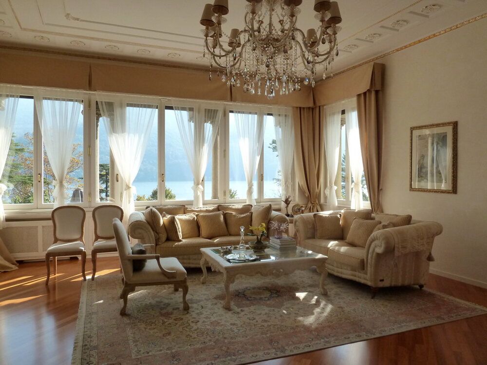 This stunning apartment offers breathtaking views of Lake Como from several rooms, including the living room, which features an entire wall of windows, and the master bedroom. Additionally, it boasts a private garden spanning 2,700 square feet.