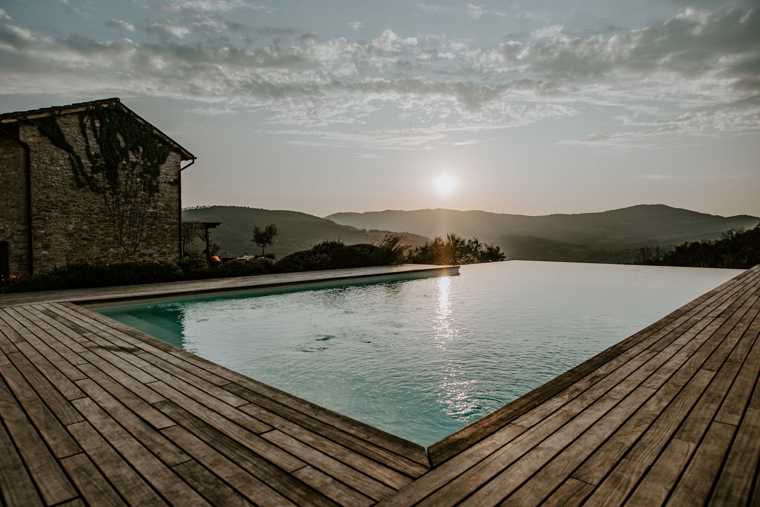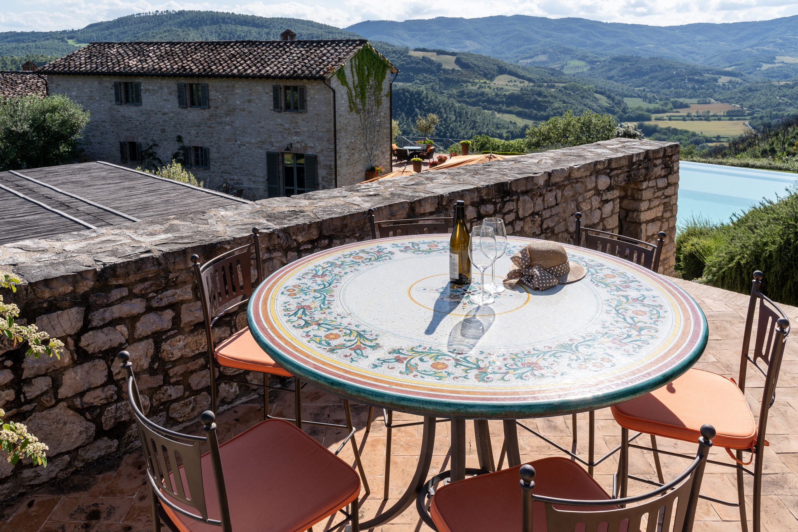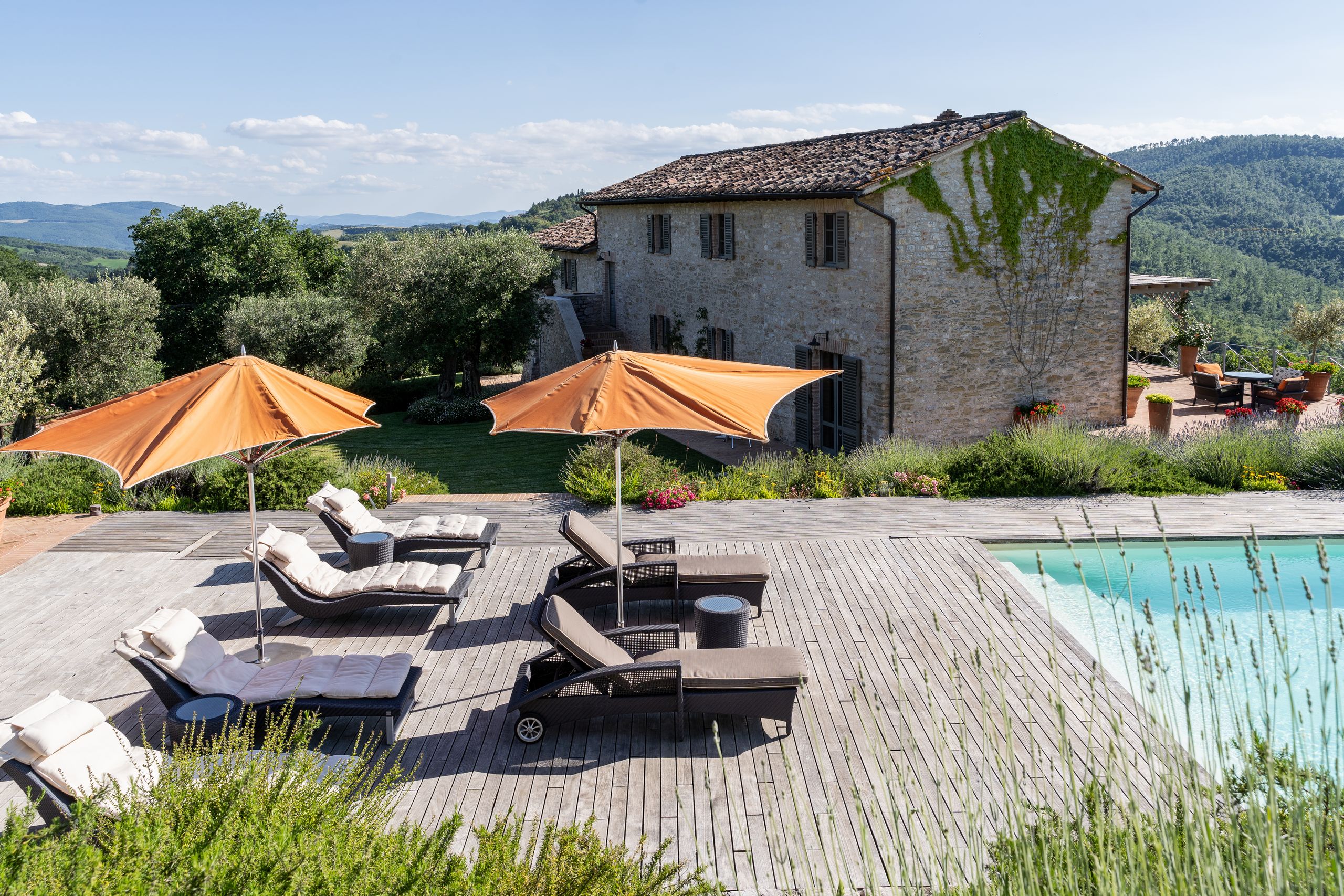 Nestled beside a picturesque golf course, Villa Cielo boasts stunning vistas of the Umbrian hills. The journey to the villa offers captivating scenery, including panoramic views of the historic Antognolla Castle, dating back to the XI century. Comprising two sections, the villa features a main unit with four bedrooms (three doubles and one with two bunk beds, all with private bathrooms except the bunk bed room), a fully equipped kitchen, a spacious dining area, and two living rooms.