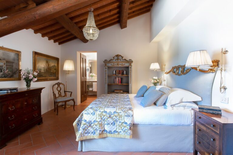 Villa Gelso stands as one of the most prestigious luxury rental properties near Florence, nestled within the Ferragamo Family Estates near Reggello, a mere 30 kilometers south of the city.