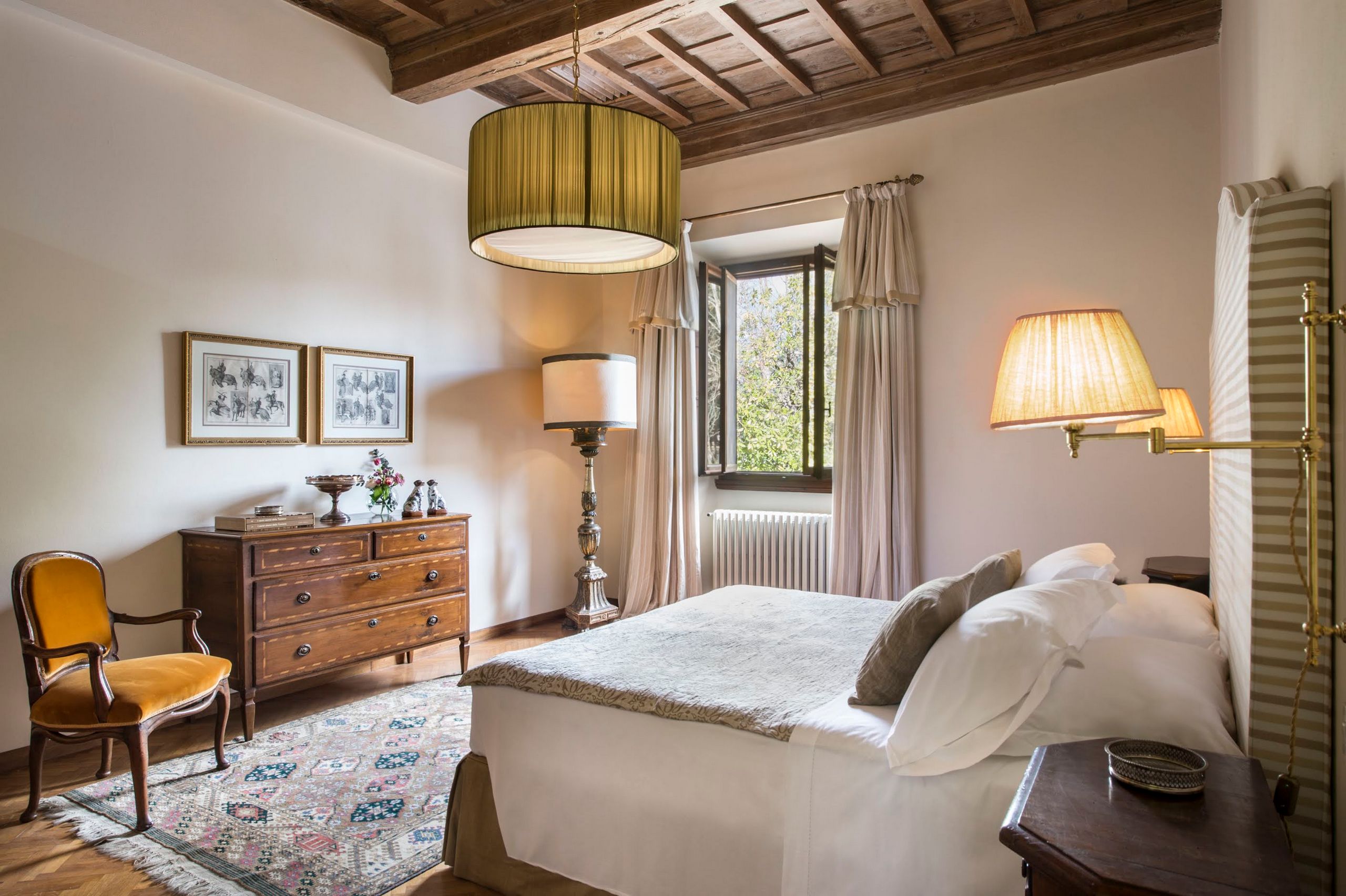 The villa now offers double rooms with its en-suite bathroom, a spacious dining room, and communal areas including a cozy reading room and a delightful living room opening onto a panoramic terrace with breathtaking views of the lush landscape. The ground floor houses the original private chapel, perfect for symbolic ceremonies, and the Agricultural Museum, showcasing over 300 objects and artworks depicting the history and lives of Tuscan farmers over the centuries. Our dedicated staff is committed to ensuring your stay is truly unforgettable.